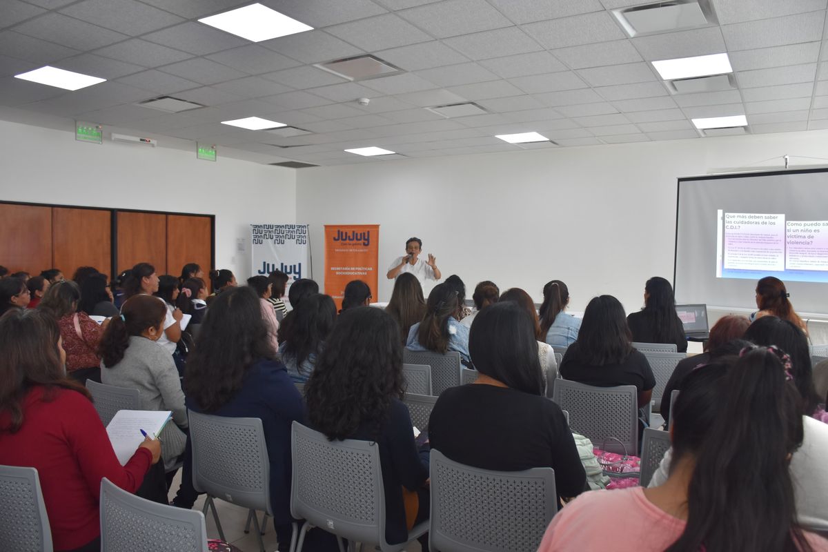 La capacitación, organizada por el Ministerio de Desarrollo Humano en coordinación con UNICEF y en articulación con el Ministerio de Educación, se realizó en los salones del Complejo Ministerial del barrio Malvinas.