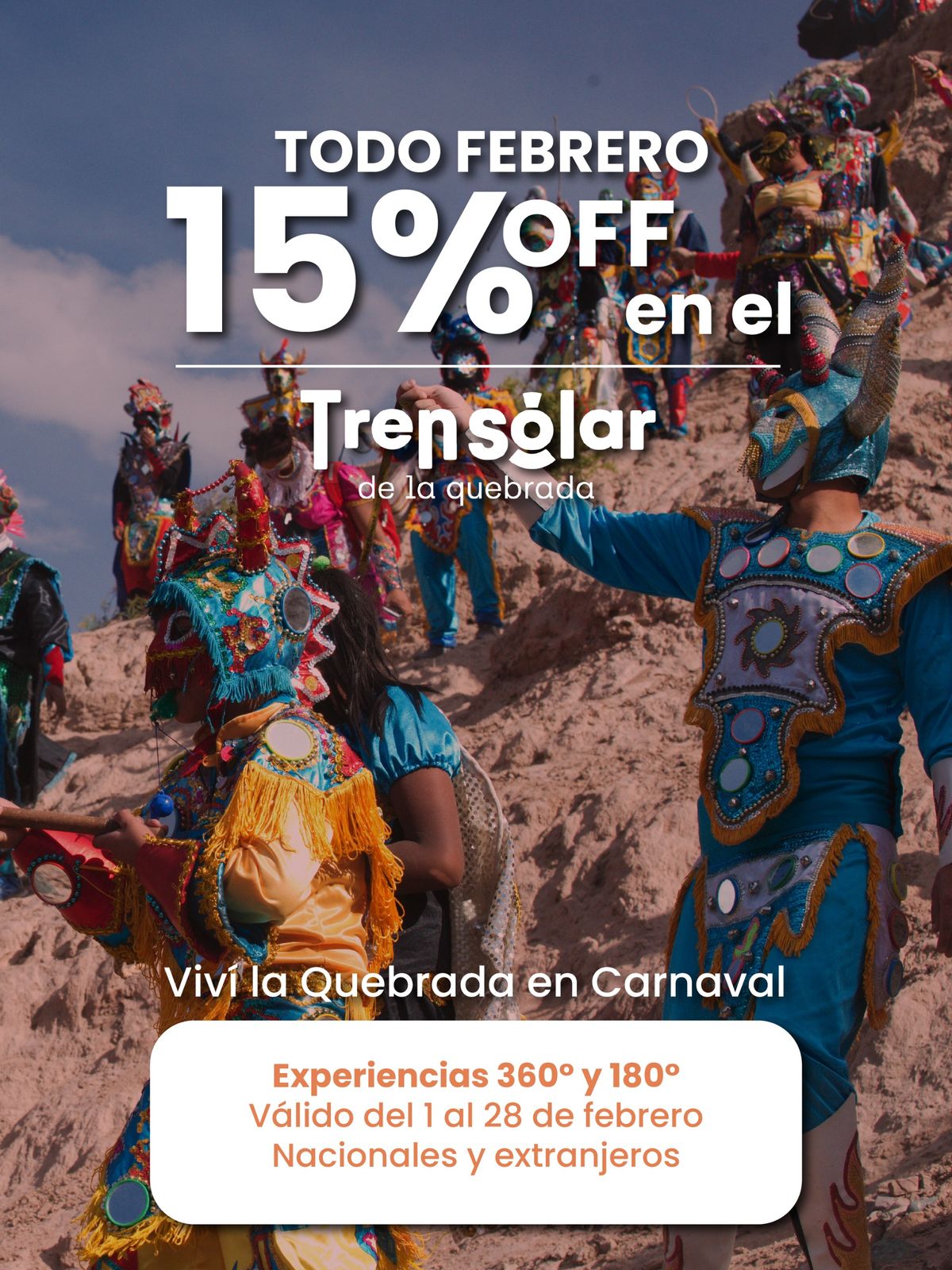 El Tren Solar de la Quebrada, el primer tren turístico solar de Latinoamérica, lanza la promoción “Subite al Carnaval”, una propuesta especial para los turistas durante el mes de febrero con un 15% de descuento, incluyendo los días de Carnaval.