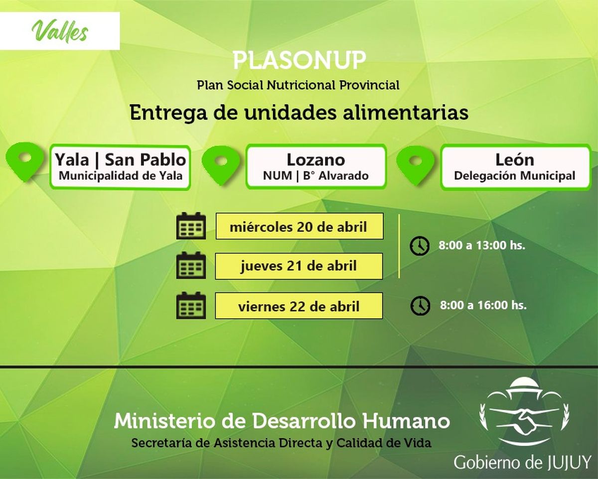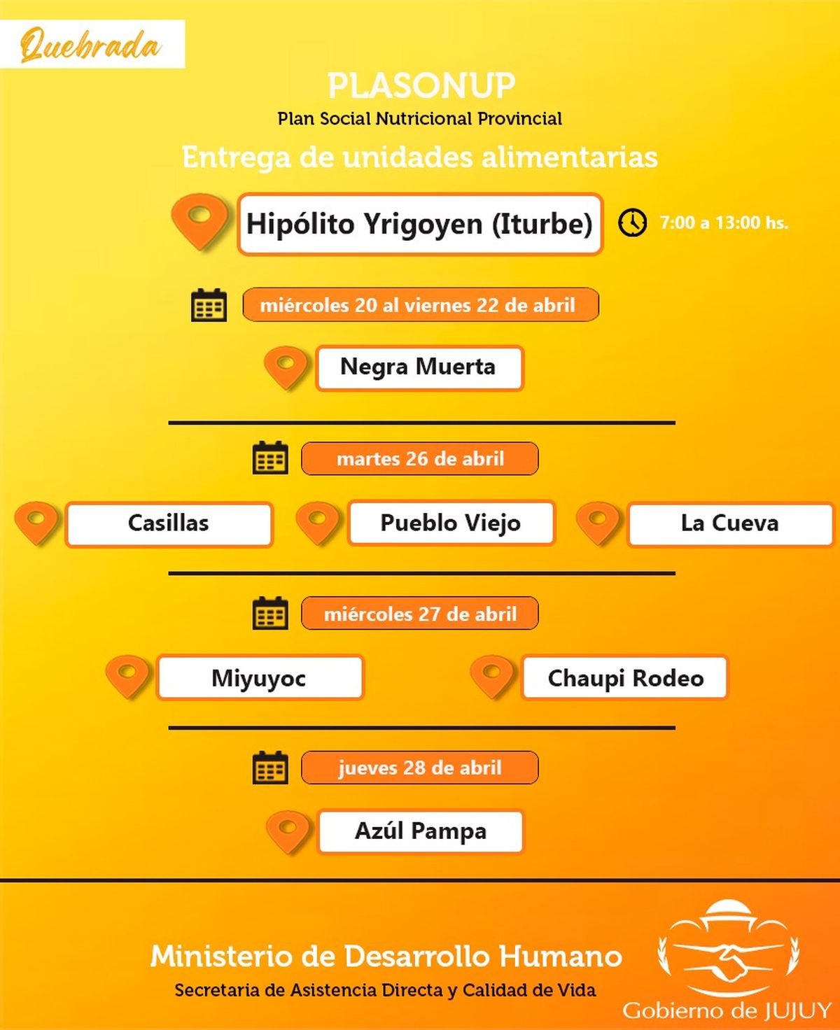 -En Hipólito Yrigoyen (Iturbe), se realizará los días miércoles 20, jueves 21, viernes, martes 26, miércoles 27 y jueves 28 de abril, de la siguiente forma: