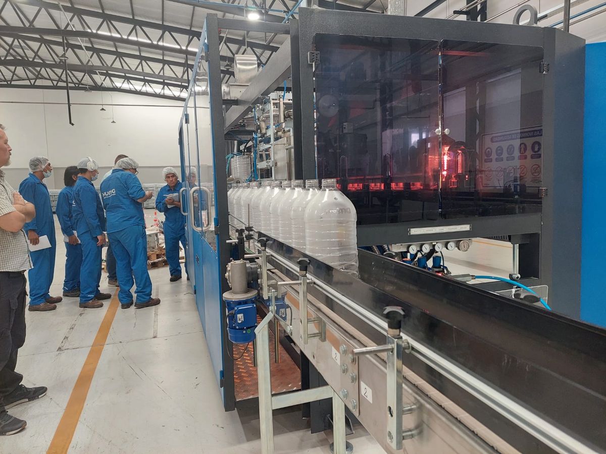 En Xuma se continúa con la colocación de soportes y cañerías de acero inoxidable para poner en funcionamiento sus dos modernas líneas de producción, además de realizar pruebas de soplado para ultimar detalles de su nueva presentación en bidones de 6 y 7 litros.